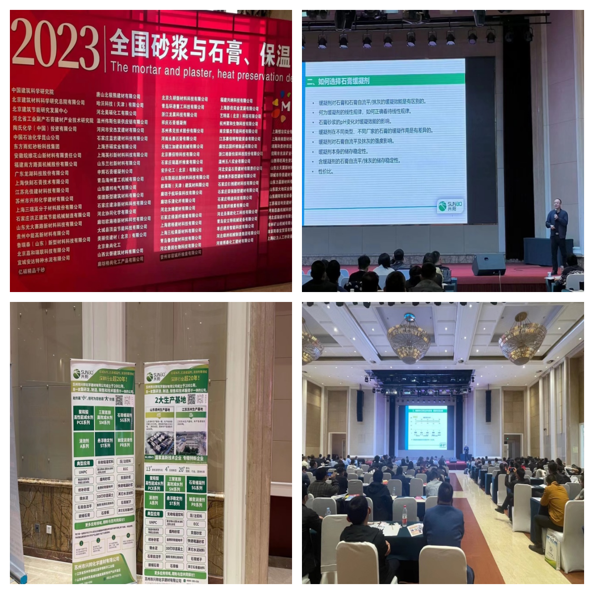 2023年4月26日-28日,全國砂漿與石膏、保溫開發(fā)者技術(shù)研討會(huì)在河北石家莊勝利召開。一直專注、專業(yè)生產(chǎn)中國特種砂漿助劑產(chǎn)品的企業(yè)—蘇州市興邦化學(xué)建材有限公司再次應(yīng)邀參加。會(huì)上,蘇州興邦技術(shù)總監(jiān)蘇新祿博士針對(duì)《緩凝劑對(duì)石膏自流平及抹灰性能的影響》進(jìn)行了精彩分析報(bào)告,并介紹了公司新品石膏緩凝劑SG-52。